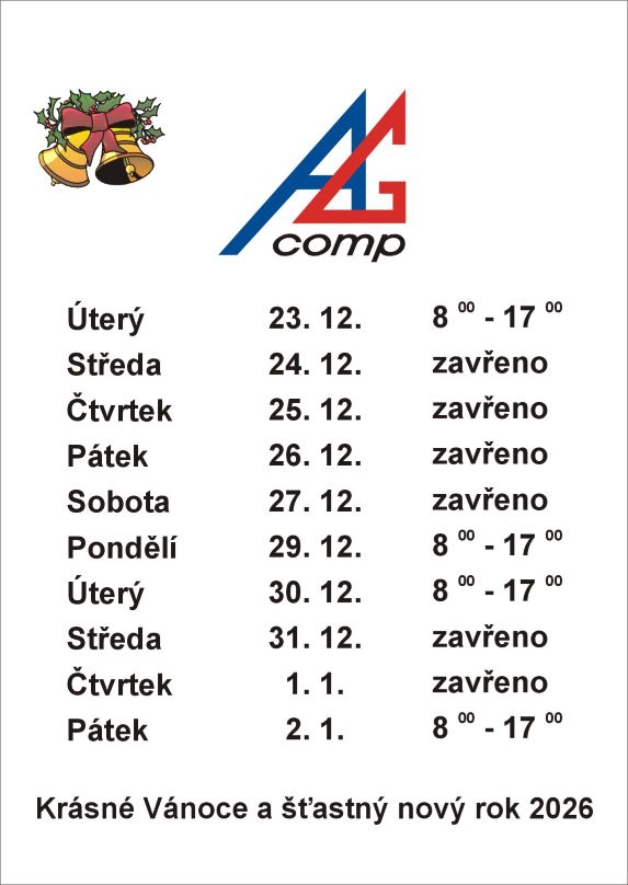 V závěru roku 2025 máme otevřeno 29. a 30. 12. od 8 do 17 hodin, v sobotu 27. 12. a ve středu 31. 12. máme zavřeno. Od 2. 1. 2026 se budeme těšit na Vaši návštěvu v obvyklé otevírací době.